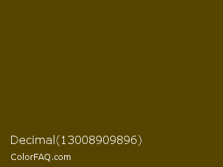 Decimal 13008909896 Color is a very dark yellow color and the nearest color is Bronze Olive #4e420c. Hex code #564500 and RGB value is rgb(86,69,0). In RGB color space, this color is composed of 34% red, 27% green, 0% blue, In CMYK color space, this color is composed of 0% cyan, 20% magenta, 100% yellow , 66% black , In HSL color space, this color has a hue angle of 48° , 100% saturation and 17% lightness.
