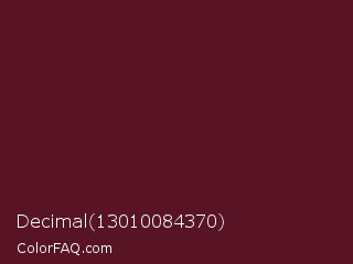 Decimal 13010084370 Color is a very dark red color and the nearest color is Maroon Oak #520c17. Hex code #581424 and RGB value is rgb(88,20,36). In RGB color space, this color is composed of 35% red, 8% green, 14% blue, In CMYK color space, this color is composed of 0% cyan, 77% magenta, 59% yellow , 65% black , In HSL color space, this color has a hue angle of 346° , 63% saturation and 21% lightness.