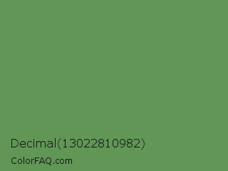 Decimal 13022810982 Color is a normal green color and the nearest color is Russian Green #679267. Hex code #619656 and RGB value is rgb(97,150,86). In RGB color space, this color is composed of 38% red, 59% green, 34% blue, In CMYK color space, this color is composed of 35% cyan, 0% magenta, 43% yellow , 41% black , In HSL color space, this color has a hue angle of 110° , 27% saturation and 46% lightness.