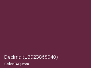 Decimal 13023868040 Color is a dark rose color and the nearest color is Tawny Port #692545. Hex code #632540 and RGB value is rgb(99,37,64). In RGB color space, this color is composed of 39% red, 15% green, 25% blue, In CMYK color space, this color is composed of 0% cyan, 63% magenta, 35% yellow , 61% black , In HSL color space, this color has a hue angle of 334° , 46% saturation and 27% lightness.