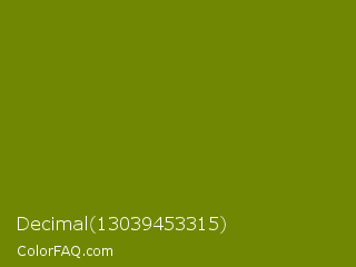 Decimal 13039453315 Color is a dark yellow color and the nearest color is Olive #808000. Hex code #708703 and RGB value is rgb(112,135,3). In RGB color space, this color is composed of 44% red, 53% green, 1% blue, In CMYK color space, this color is composed of 17% cyan, 0% magenta, 98% yellow , 47% black , In HSL color space, this color has a hue angle of 70° , 96% saturation and 27% lightness.