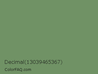 Decimal 13039465367 Color is a normal green color and the nearest color is Highland #6f8e63. Hex code #709265 and RGB value is rgb(112,146,101). In RGB color space, this color is composed of 44% red, 57% green, 40% blue, In CMYK color space, this color is composed of 23% cyan, 0% magenta, 31% yellow , 43% black , In HSL color space, this color has a hue angle of 105° , 18% saturation and 48% lightness.