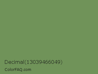 Decimal 13039466049 Color is a normal green color and the nearest color is Highland #6f8e63. Hex code #709359 and RGB value is rgb(112,147,89). In RGB color space, this color is composed of 44% red, 58% green, 35% blue, In CMYK color space, this color is composed of 24% cyan, 0% magenta, 39% yellow , 42% black , In HSL color space, this color has a hue angle of 96° , 25% saturation and 46% lightness.