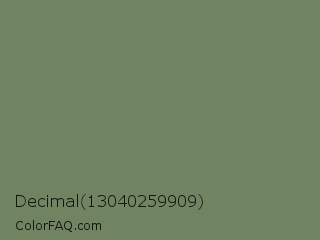 Decimal 13040259909 Color is a normal green color and the nearest color is Limed Ash #747d63. Hex code #718461 and RGB value is rgb(113,132,97). In RGB color space, this color is composed of 44% red, 52% green, 38% blue, In CMYK color space, this color is composed of 14% cyan, 0% magenta, 27% yellow , 48% black , In HSL color space, this color has a hue angle of 93° , 15% saturation and 45% lightness.