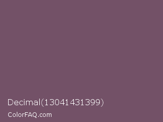 Decimal 13041431399 Color is a normal magenta color and the nearest color is Scorpion #695f62. Hex code #735167 and RGB value is rgb(115,81,103). In RGB color space, this color is composed of 45% red, 32% green, 40% blue, In CMYK color space, this color is composed of 0% cyan, 30% magenta, 10% yellow , 55% black , In HSL color space, this color has a hue angle of 321° , 17% saturation and 38% lightness.