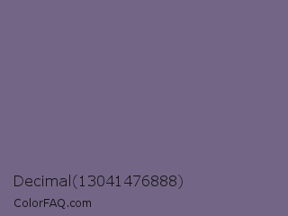 Decimal 13041476888 Color is a normal violet color and the nearest color is Rum #796989. Hex code #736586 and RGB value is rgb(115,101,134). In RGB color space, this color is composed of 45% red, 40% green, 53% blue, In CMYK color space, this color is composed of 14% cyan, 25% magenta, 0% yellow , 47% black , In HSL color space, this color has a hue angle of 265° , 14% saturation and 46% lightness.