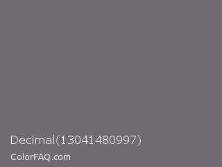 Decimal 13041480997 Color is a normal purple color and the nearest color is Fedora #796a78. Hex code #736975 and RGB value is rgb(115,105,117). In RGB color space, this color is composed of 45% red, 41% green, 46% blue, In CMYK color space, this color is composed of 2% cyan, 10% magenta, 0% yellow , 54% black , In HSL color space, this color has a hue angle of 290° , 5% saturation and 44% lightness.