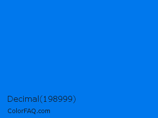 Decimal 198999 Color is a normal blue color and the nearest color is Azure Radiance #007fff. Hex code #0078ed and RGB value is rgb(0,120,237). In RGB color space, this color is composed of 0% red, 47% green, 93% blue, In CMYK color space, this color is composed of 100% cyan, 49% magenta, 0% yellow , 7% black , In HSL color space, this color has a hue angle of 210° , 100% saturation and 46% lightness.