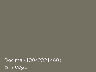 Decimal 13042321460 Color is a normal yellow color and the nearest color is Pablo #776f61. Hex code #747062 and RGB value is rgb(116,112,98). In RGB color space, this color is composed of 45% red, 44% green, 38% blue, In CMYK color space, this color is composed of 0% cyan, 3% magenta, 16% yellow , 55% black , In HSL color space, this color has a hue angle of 47° , 8% saturation and 42% lightness.