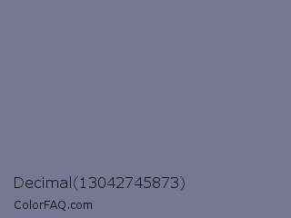 Decimal 13042745873 Color is a normal blue color and the nearest color is Rhythm #777696. Hex code #757793 and RGB value is rgb(117,119,147). In RGB color space, this color is composed of 46% red, 47% green, 58% blue, In CMYK color space, this color is composed of 20% cyan, 19% magenta, 0% yellow , 42% black , In HSL color space, this color has a hue angle of 236° , 12% saturation and 52% lightness.
