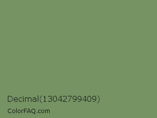 Decimal 13042799409 Color is a normal green color and the nearest color is Highland #6f8e63. Hex code #759363 and RGB value is rgb(117,147,99). In RGB color space, this color is composed of 46% red, 58% green, 39% blue, In CMYK color space, this color is composed of 20% cyan, 0% magenta, 33% yellow , 42% black , In HSL color space, this color has a hue angle of 98° , 20% saturation and 48% lightness.