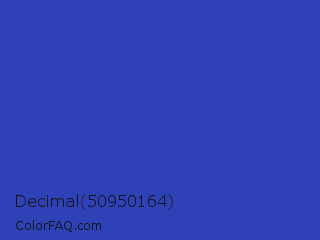 Decimal 50950164 Color is a normal blue color and the nearest color is Governor Bay #2f3cb3. Hex code #2f41b6 and RGB value is rgb(47,65,182). In RGB color space, this color is composed of 18% red, 25% green, 71% blue, In CMYK color space, this color is composed of 74% cyan, 64% magenta, 0% yellow , 29% black , In HSL color space, this color has a hue angle of 232° , 59% saturation and 45% lightness.