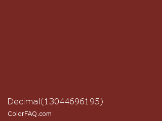 Decimal 13044696195 Color is a dark red color and the nearest color is Metallic Copper #71291d. Hex code #782823 and RGB value is rgb(120,40,35). In RGB color space, this color is composed of 47% red, 16% green, 14% blue, In CMYK color space, this color is composed of 0% cyan, 67% magenta, 71% yellow , 53% black , In HSL color space, this color has a hue angle of 4° , 55% saturation and 30% lightness.