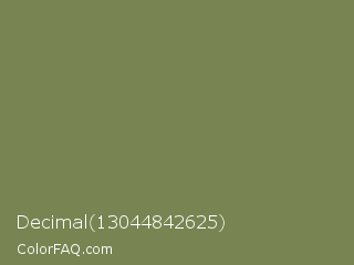 Decimal 13044842625 Color is a normal lime color and the nearest color is Limed Ash #747d63. Hex code #788451 and RGB value is rgb(120,132,81). In RGB color space, this color is composed of 47% red, 52% green, 32% blue, In CMYK color space, this color is composed of 9% cyan, 0% magenta, 39% yellow , 48% black , In HSL color space, this color has a hue angle of 74° , 24% saturation and 42% lightness.