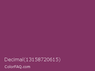 Decimal 13158720615 Color is a normal magenta color and the nearest color is Boysenberry #873260. Hex code #823263 and RGB value is rgb(130,50,99). In RGB color space, this color is composed of 51% red, 20% green, 39% blue, In CMYK color space, this color is composed of 0% cyan, 62% magenta, 24% yellow , 49% black , In HSL color space, this color has a hue angle of 323° , 44% saturation and 35% lightness.