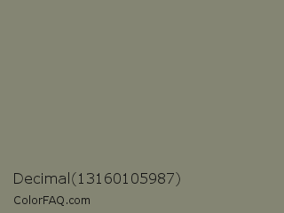 Decimal 13160105987 Color is a normal yellow color and the nearest color is Bandicoot #858470. Hex code #848573 and RGB value is rgb(132,133,115). In RGB color space, this color is composed of 52% red, 52% green, 45% blue, In CMYK color space, this color is composed of 1% cyan, 0% magenta, 14% yellow , 48% black , In HSL color space, this color has a hue angle of 63° , 7% saturation and 49% lightness.