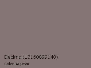 Decimal 13160899140 Color is a normal red color and the nearest color is Empress #817377. Hex code #857574 and RGB value is rgb(133,117,116). In RGB color space, this color is composed of 52% red, 46% green, 45% blue, In CMYK color space, this color is composed of 0% cyan, 12% magenta, 13% yellow , 48% black , In HSL color space, this color has a hue angle of 4° , 7% saturation and 49% lightness.