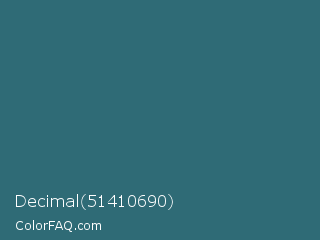 Decimal 51410690 Color is a normal cyan color and the nearest color is Oracle #377475. Hex code #2f6b76 and RGB value is rgb(47,107,118). In RGB color space, this color is composed of 18% red, 42% green, 46% blue, In CMYK color space, this color is composed of 60% cyan, 9% magenta, 0% yellow , 54% black , In HSL color space, this color has a hue angle of 189° , 43% saturation and 32% lightness.
