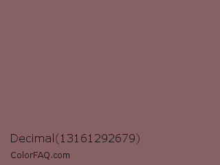 Decimal 13161292679 Color is a normal red color and the nearest color is Deep Taupe #7e5e60. Hex code #866063 and RGB value is rgb(134,96,99). In RGB color space, this color is composed of 53% red, 38% green, 39% blue, In CMYK color space, this color is composed of 0% cyan, 28% magenta, 26% yellow , 47% black , In HSL color space, this color has a hue angle of 355° , 17% saturation and 45% lightness.