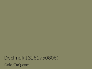 Decimal 13161750806 Color is a normal yellow color and the nearest color is Clay Creek #8a8360. Hex code #868664 and RGB value is rgb(134,134,100). In RGB color space, this color is composed of 53% red, 53% green, 39% blue, In CMYK color space, this color is composed of 0% cyan, 0% magenta, 25% yellow , 47% black , In HSL color space, this color has a hue angle of 60° , 15% saturation and 46% lightness.