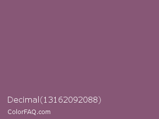 Decimal 13162092088 Color is a normal magenta color and the nearest color is Sugar Plum #914e75. Hex code #875776 and RGB value is rgb(135,87,118). In RGB color space, this color is composed of 53% red, 34% green, 46% blue, In CMYK color space, this color is composed of 0% cyan, 36% magenta, 13% yellow , 47% black , In HSL color space, this color has a hue angle of 321° , 22% saturation and 44% lightness.