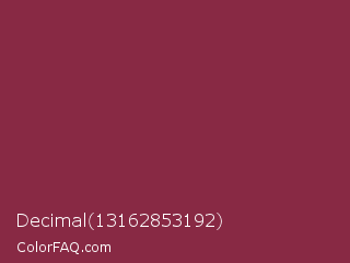 Decimal 13162853192 Color is a normal rose color and the nearest color is Solid Pink #893843. Hex code #882944 and RGB value is rgb(136,41,68). In RGB color space, this color is composed of 53% red, 16% green, 27% blue, In CMYK color space, this color is composed of 0% cyan, 70% magenta, 50% yellow , 47% black , In HSL color space, this color has a hue angle of 343° , 54% saturation and 35% lightness.