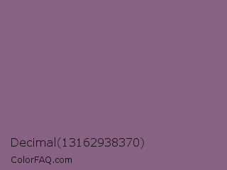 Decimal 13162938370 Color is a normal magenta color and the nearest color is Chinese Violet #856088. Hex code #886282 and RGB value is rgb(136,98,130). In RGB color space, this color is composed of 53% red, 38% green, 51% blue, In CMYK color space, this color is composed of 0% cyan, 28% magenta, 4% yellow , 47% black , In HSL color space, this color has a hue angle of 309° , 16% saturation and 46% lightness.