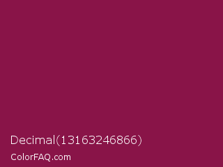 Decimal 13163246866 Color is a normal rose color and the nearest color is Disco #871550. Hex code #891448 and RGB value is rgb(137,20,72). In RGB color space, this color is composed of 54% red, 8% green, 28% blue, In CMYK color space, this color is composed of 0% cyan, 85% magenta, 47% yellow , 46% black , In HSL color space, this color has a hue angle of 333° , 75% saturation and 31% lightness.