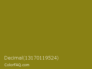 Decimal 13170119524 Color is a normal yellow color and the nearest color is Trendy Green #7c881a. Hex code #898114 and RGB value is rgb(137,129,20). In RGB color space, this color is composed of 54% red, 51% green, 8% blue, In CMYK color space, this color is composed of 0% cyan, 6% magenta, 85% yellow , 46% black , In HSL color space, this color has a hue angle of 56° , 75% saturation and 31% lightness.