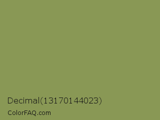 Decimal 13170144023 Color is a normal lime color and the nearest color is Moss Green #8a9a5b. Hex code #899855 and RGB value is rgb(137,152,85). In RGB color space, this color is composed of 54% red, 60% green, 33% blue, In CMYK color space, this color is composed of 10% cyan, 0% magenta, 44% yellow , 40% black , In HSL color space, this color has a hue angle of 73° , 28% saturation and 46% lightness.