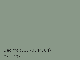 Decimal 13170144104 Color is a normal green color and the nearest color is Spanish Green #819885. Hex code #899888 and RGB value is rgb(137,152,136). In RGB color space, this color is composed of 54% red, 60% green, 53% blue, In CMYK color space, this color is composed of 10% cyan, 0% magenta, 11% yellow , 40% black , In HSL color space, this color has a hue angle of 116° , 7% saturation and 56% lightness.