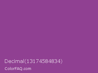 Decimal 13174584834 Color is a normal magenta color and the nearest color is Plum #8e4585. Hex code #904092 and RGB value is rgb(144,64,146). In RGB color space, this color is composed of 56% red, 25% green, 57% blue, In CMYK color space, this color is composed of 1% cyan, 56% magenta, 0% yellow , 43% black , In HSL color space, this color has a hue angle of 299° , 39% saturation and 41% lightness.
