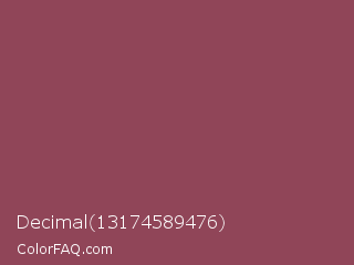 Decimal 13174589476 Color is a normal red color and the nearest color is Quinacridone Magenta #8e3a59. Hex code #904558 and RGB value is rgb(144,69,88). In RGB color space, this color is composed of 56% red, 27% green, 35% blue, In CMYK color space, this color is composed of 0% cyan, 52% magenta, 39% yellow , 44% black , In HSL color space, this color has a hue angle of 345° , 35% saturation and 42% lightness.