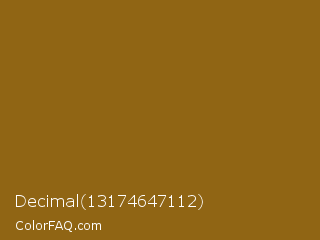Decimal 13174647112 Color is a normal orange color and the nearest color is Golden Brown #996515. Hex code #906514 and RGB value is rgb(144,101,20). In RGB color space, this color is composed of 56% red, 40% green, 8% blue, In CMYK color space, this color is composed of 0% cyan, 30% magenta, 86% yellow , 44% black , In HSL color space, this color has a hue angle of 39° , 76% saturation and 32% lightness.