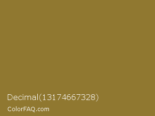 Decimal 13174667328 Color is a normal orange color and the nearest color is Old Moss Green #867e36. Hex code #907830 and RGB value is rgb(144,120,48). In RGB color space, this color is composed of 56% red, 47% green, 19% blue, In CMYK color space, this color is composed of 0% cyan, 17% magenta, 67% yellow , 44% black , In HSL color space, this color has a hue angle of 45° , 50% saturation and 38% lightness.
