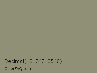 Decimal 13174718548 Color is a normal yellow color and the nearest color is Artichoke #8f9779. Hex code #909076 and RGB value is rgb(144,144,118). In RGB color space, this color is composed of 56% red, 56% green, 46% blue, In CMYK color space, this color is composed of 0% cyan, 0% magenta, 18% yellow , 44% black , In HSL color space, this color has a hue angle of 60° , 10% saturation and 51% lightness.