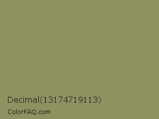 Decimal 13174719113 Color is a normal yellow color and the nearest color is Avocado Pulp #888d65. Hex code #909161 and RGB value is rgb(144,145,97). In RGB color space, this color is composed of 56% red, 57% green, 38% blue, In CMYK color space, this color is composed of 1% cyan, 0% magenta, 33% yellow , 43% black , In HSL color space, this color has a hue angle of 61° , 20% saturation and 47% lightness.