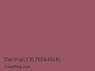 Decimal 13179584918 Color is a normal red color and the nearest color is Au Chico #97605d. Hex code #975764 and RGB value is rgb(151,87,100). In RGB color space, this color is composed of 59% red, 34% green, 39% blue, In CMYK color space, this color is composed of 0% cyan, 42% magenta, 34% yellow , 41% black , In HSL color space, this color has a hue angle of 348° , 27% saturation and 47% lightness.
