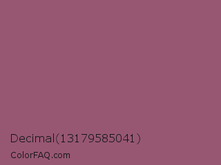 Decimal 13179585041 Color is a normal rose color and the nearest color is Rose Dust #9e5e6f. Hex code #975773 and RGB value is rgb(151,87,115). In RGB color space, this color is composed of 59% red, 34% green, 45% blue, In CMYK color space, this color is composed of 0% cyan, 42% magenta, 24% yellow , 41% black , In HSL color space, this color has a hue angle of 334° , 27% saturation and 47% lightness.
