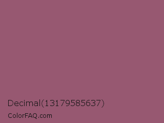 Decimal 13179585637 Color is a normal rose color and the nearest color is Rose Dust #9e5e6f. Hex code #975871 and RGB value is rgb(151,88,113). In RGB color space, this color is composed of 59% red, 35% green, 44% blue, In CMYK color space, this color is composed of 0% cyan, 42% magenta, 25% yellow , 41% black , In HSL color space, this color has a hue angle of 336° , 26% saturation and 47% lightness.