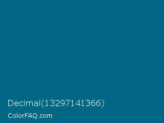 Decimal 13297141366 Color is a dark cyan color and the nearest color is Orient #015e85. Hex code #026784 and RGB value is rgb(2,103,132). In RGB color space, this color is composed of 1% red, 40% green, 52% blue, In CMYK color space, this color is composed of 98% cyan, 22% magenta, 0% yellow , 48% black , In HSL color space, this color has a hue angle of 193° , 97% saturation and 26% lightness.
