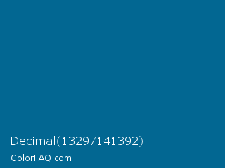 Decimal 13297141392 Color is a dark blue color and the nearest color is Sea Blue #006994. Hex code #026792 and RGB value is rgb(2,103,146). In RGB color space, this color is composed of 1% red, 40% green, 57% blue, In CMYK color space, this color is composed of 99% cyan, 29% magenta, 0% yellow , 43% black , In HSL color space, this color has a hue angle of 198° , 97% saturation and 29% lightness.