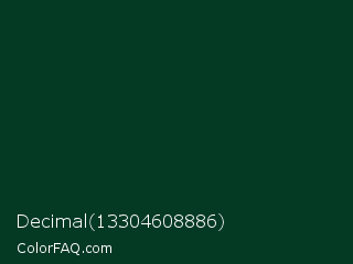 Decimal 13304608886 Color is a very dark green color and the nearest color is Bottle Green #093624. Hex code #043924 and RGB value is rgb(4,57,36). In RGB color space, this color is composed of 2% red, 22% green, 14% blue, In CMYK color space, this color is composed of 93% cyan, 0% magenta, 37% yellow , 78% black , In HSL color space, this color has a hue angle of 156° , 87% saturation and 12% lightness.