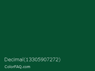 Decimal 13305907272 Color is a very dark green color and the nearest color is Sherwood Green #02402c. Hex code #065030 and RGB value is rgb(6,80,48). In RGB color space, this color is composed of 2% red, 31% green, 19% blue, In CMYK color space, this color is composed of 93% cyan, 0% magenta, 40% yellow , 69% black , In HSL color space, this color has a hue angle of 154° , 86% saturation and 17% lightness.