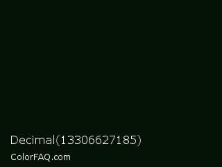 Decimal 13306627185 Color is a almost black green color and the nearest color is Gordons Green #0b1107. Hex code #071207 and RGB value is rgb(7,18,7). In RGB color space, this color is composed of 3% red, 7% green, 3% blue, In CMYK color space, this color is composed of 61% cyan, 0% magenta, 61% yellow , 93% black , In HSL color space, this color has a hue angle of 120° , 44% saturation and 5% lightness.