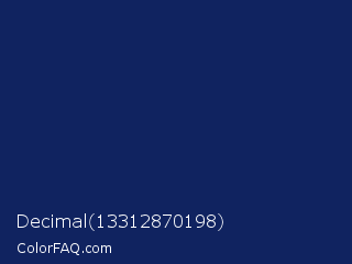 Decimal 13312870198 Color is a very dark blue color and the nearest color is Madison #09255d. Hex code #102360 and RGB value is rgb(16,35,96). In RGB color space, this color is composed of 6% red, 14% green, 38% blue, In CMYK color space, this color is composed of 83% cyan, 64% magenta, 0% yellow , 62% black , In HSL color space, this color has a hue angle of 226° , 71% saturation and 22% lightness.
