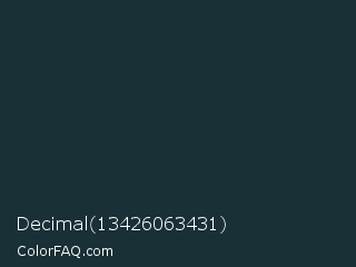Decimal 13426063431 Color is a very dark blue color and the nearest color is Gable Green #163531. Hex code #193037 and RGB value is rgb(25,48,55). In RGB color space, this color is composed of 10% red, 19% green, 22% blue, In CMYK color space, this color is composed of 55% cyan, 13% magenta, 0% yellow , 78% black , In HSL color space, this color has a hue angle of 194° , 38% saturation and 16% lightness.