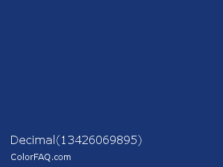 Decimal 13426069895 Color is a dark blue color and the nearest color is Astronaut #283a77. Hex code #193573 and RGB value is rgb(25,53,115). In RGB color space, this color is composed of 10% red, 21% green, 45% blue, In CMYK color space, this color is composed of 78% cyan, 54% magenta, 0% yellow , 55% black , In HSL color space, this color has a hue angle of 221° , 64% saturation and 27% lightness.
