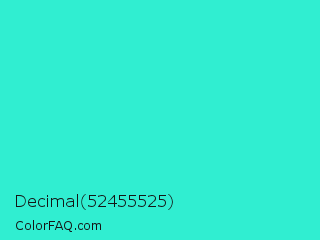 Decimal 52455525 Color is a normal cyan color and the nearest color is Turquoise #40e0d0. Hex code #30eed1 and RGB value is rgb(48,238,209). In RGB color space, this color is composed of 19% red, 93% green, 82% blue, In CMYK color space, this color is composed of 80% cyan, 0% magenta, 12% yellow , 7% black , In HSL color space, this color has a hue angle of 171° , 85% saturation and 56% lightness.