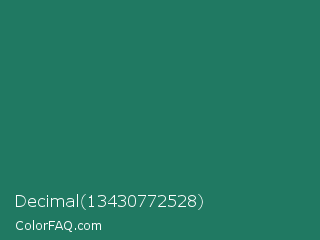 Decimal 13430772528 Color is a dark cyan color and the nearest color is Genoa #15736b. Hex code #207962 and RGB value is rgb(32,121,98). In RGB color space, this color is composed of 13% red, 47% green, 38% blue, In CMYK color space, this color is composed of 74% cyan, 0% magenta, 19% yellow , 53% black , In HSL color space, this color has a hue angle of 164° , 58% saturation and 30% lightness.